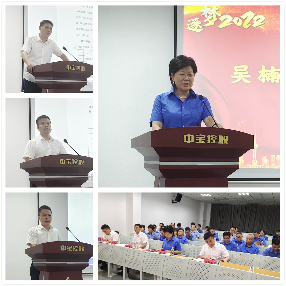 7月9日上午,浙江中宝实业控股股份有限公司2022年上半年度述职工作会议在公司报告厅顺利召开。公司总裁吴楠女士、各公司及产业线管理者、营销团队等参加了会议。