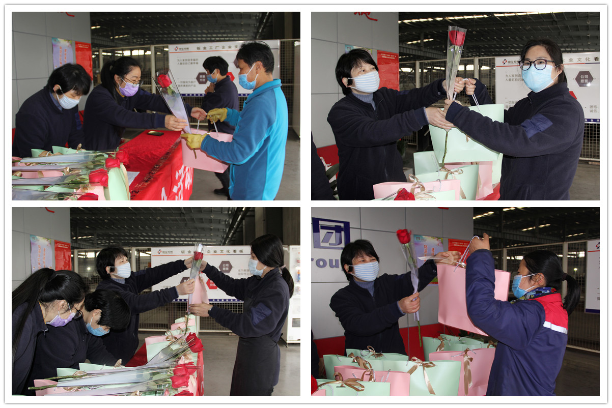上午,女员工们依序前往活动现场,工作人员一一为大家送上娇艳的玫瑰以及洗手液等防疫物资作为节日礼物。大家互道“节日快乐”,“花好漂亮”,“洗手液、湿巾纸送的正是时候,非常实用”……